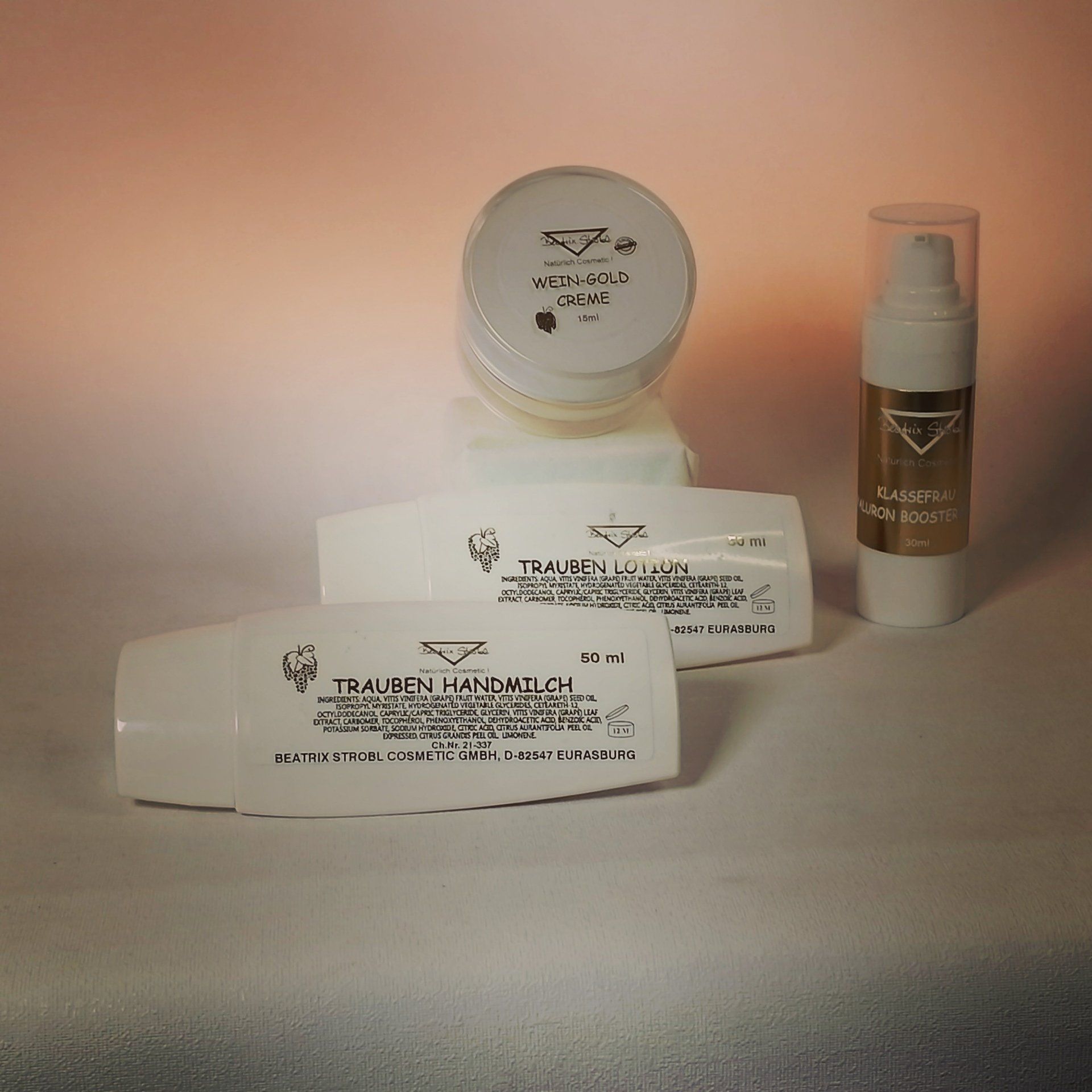 Hallo, ich bins wieder, Eure Carmen Wein, Weib und Gesang - ein Sprichwort, das uns zum Schmunzeln bringen. Aber in diesem Zusammenhang habe ich heute wieder spannende Informationen für Euch: Denn Herbstzeit ist Traubenzeit Das ist die ideale Überleitung zur Vinocosmetic-Serie von Beatrix Strobl - natürlich Cosmetic! Also einer Serie, in der die Traube die Basis ist und die Hauptrolle spielt Warum Traubenprodukte??? Stellt Euch doch einmal eine Reife Weintraube vor: Wie sieht sie aus??? Knackig, prall und voller Feuchtigkeit Und genau so möchten wir doch alle, dass unsere Haut aussieht. Beatrix Strobl hat hierfür eine Naturkosmetik-Linie - Vinocosmetic - für Sie und Ihn entwickelt. Mit einer Vielzahl an traumhaften Produkten . Einer der wichtigsten Wirkstoffe hierbei ist das kaltgepresste Traubenkernöl. Das ist eines der hochwertigsten Planzenöle überhaupt ( stark anti-oxidant, freie Radikalen-Fänger ). Es sind aber auch noch andere, wunderbare naturreine Wirkstoffe enthalten, wie z.B. Traubenfruchtwasser, OPC, Q10, Mineralien und Vitamine. Wir haben hier Cremes, Lotions (auch für Männer), Handpflege-, Körperpflege-, Haarpflege-Produkte. Damit kannst Du Dir ein komplettes Herbst-Wohlfühl-Programm von Kopf bis Fuß zusammenstellen. Denn jetzt beginnt die Zeit, wo wir uns auch sehr gerne einmal zu Hause einen gemütlichen Wellness-Tag gönnen und erleben wollen. Kerzen an und los geht`s . Damit tut Ihr nicht nur etwas für Eure Haut - genauso auch für Eure Seele. Denn während der dunklen Jahreszeit brauchen wir ganz viel Wohlgefühl und ein auch bisschen Luxus. Eines noch: Im Herbst müssen wir alle mehr für unsere Pflege und Haut tun, denn die Luft wird rauer (z.B. trockene Heizungsluft) - d.h. die Haut wirkt dann schnell strapaziert, trocken, müde und fahl. Also denkt an die reifen Trauben. Erfahrungswerte über diese fantastischen Produkte erhalte ich tagtäglich von meinen begeisterten Kunden/Kundinnen. Natürlich teste ich auch alles an mir selbst. Aber was erzähle ich Euch noch? Ich habe diesen WOW-Effekt jeden Tag - ich fühle mich fantastisch, meine Haut strahlt und sieht extrem gepflegt aus. ALSO - macht es mir doch ganz einfach nach um Euch genauso fantastisch zu fühlen. Selbst andere Frauen werden Euch ob Eurer Ausstrahlung und Gepflegtheit bewundern (die Männer sowieso) Fühlt Euch einfach glamourös und Atem beraubend Habt Spaß und bis zum nächsten Blog/Podcast Eure Carmen